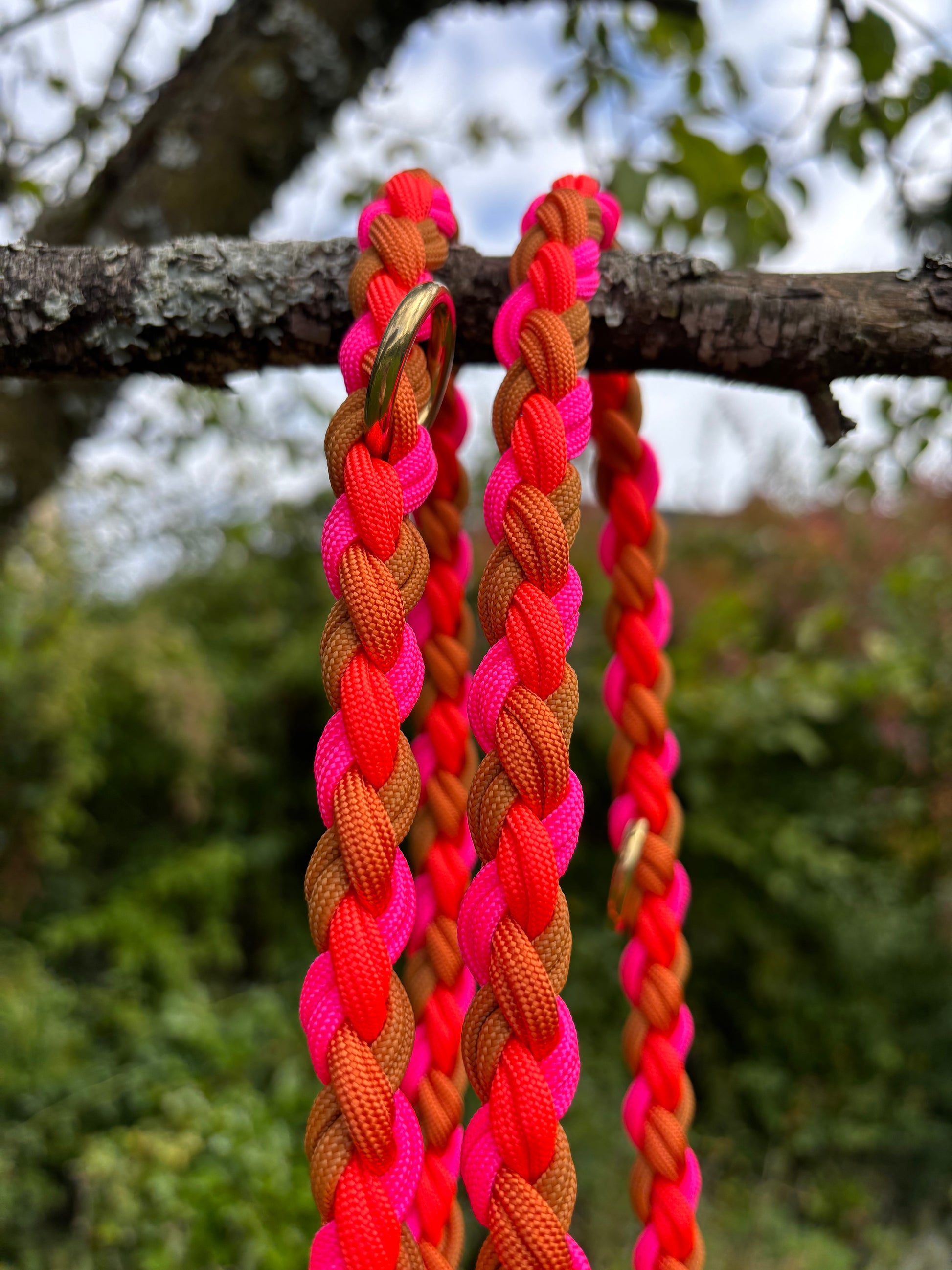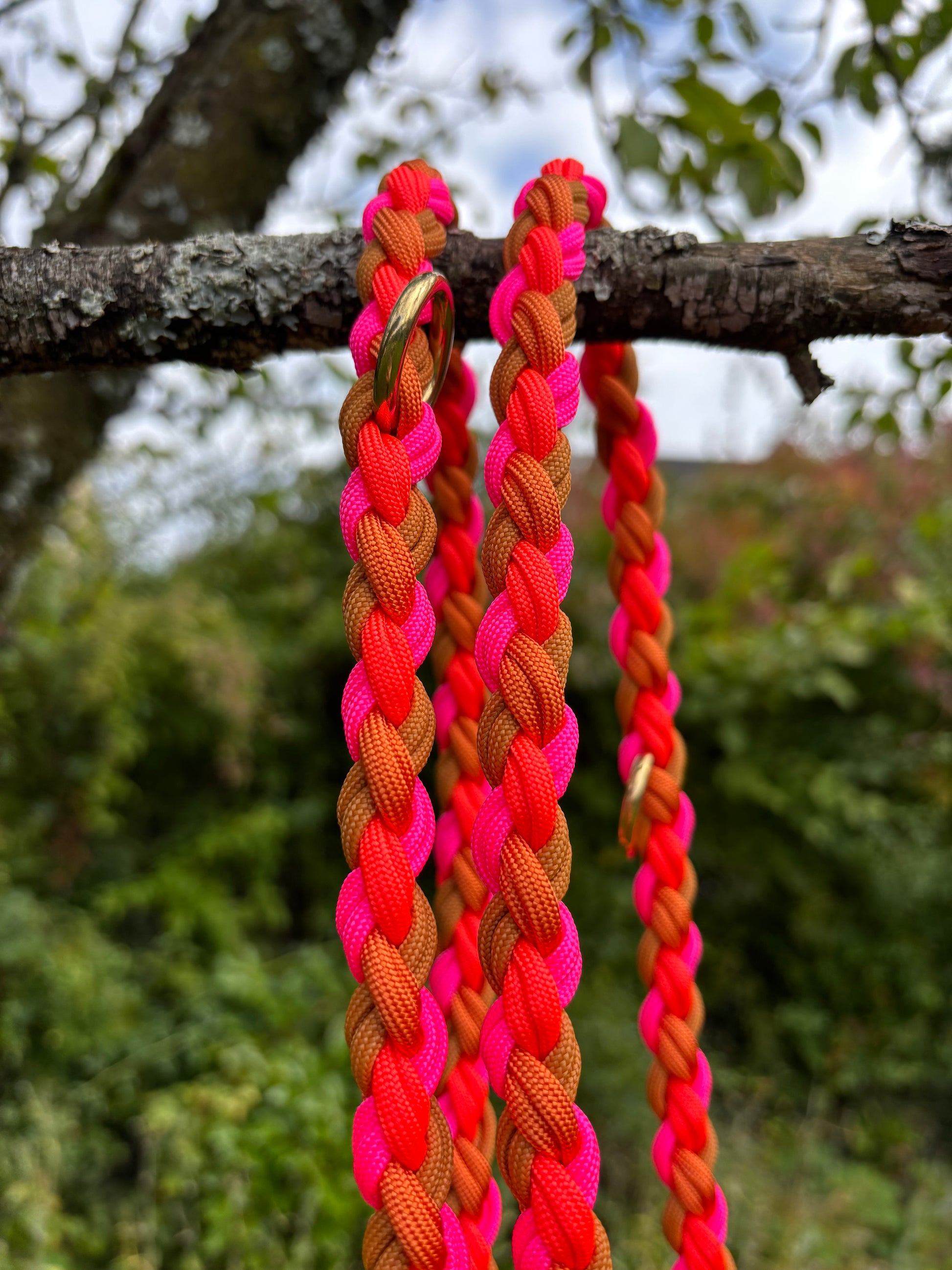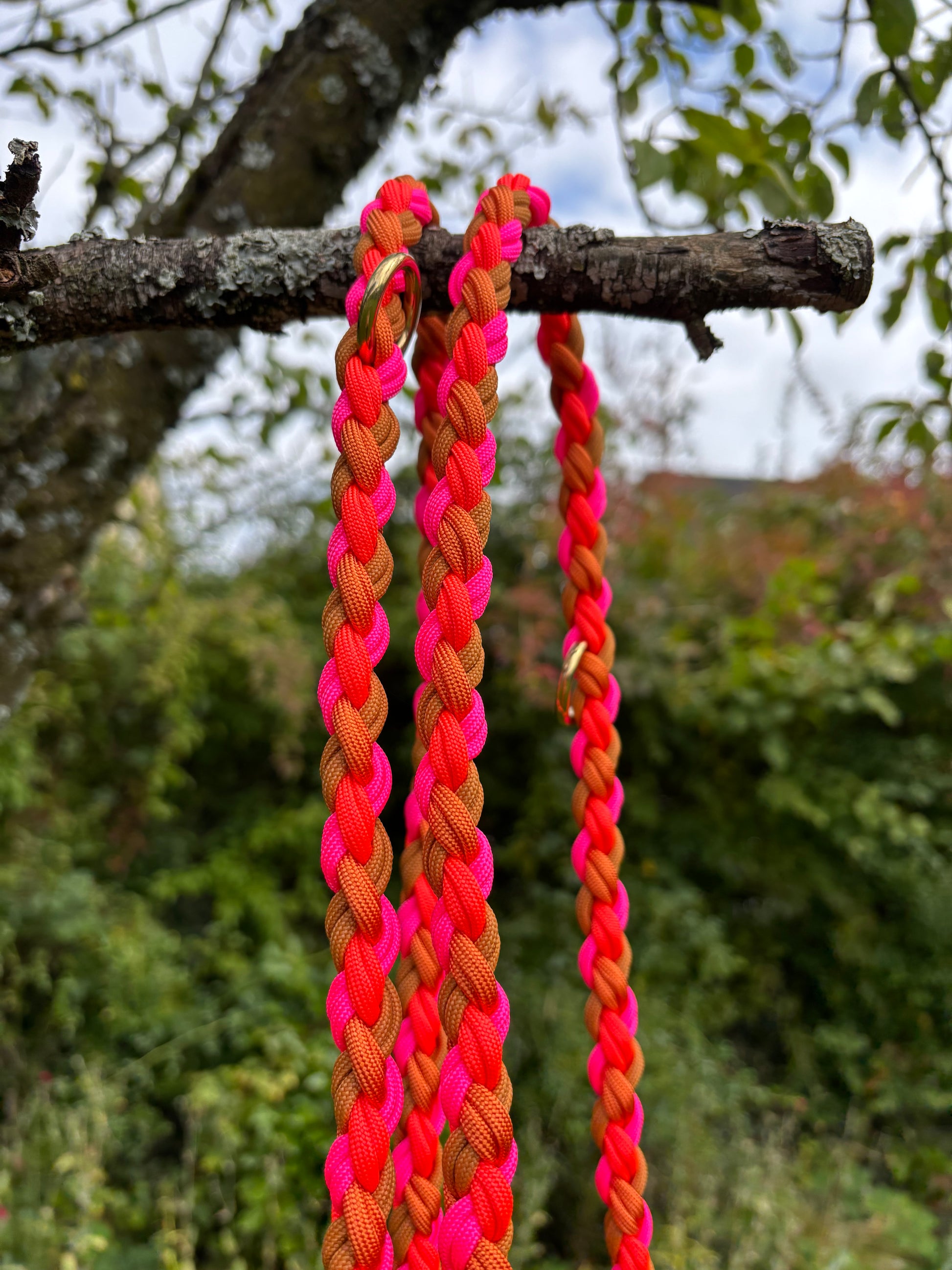 Hundeleine „Ada“ – Paracord in Kupfer, Orange & Pink