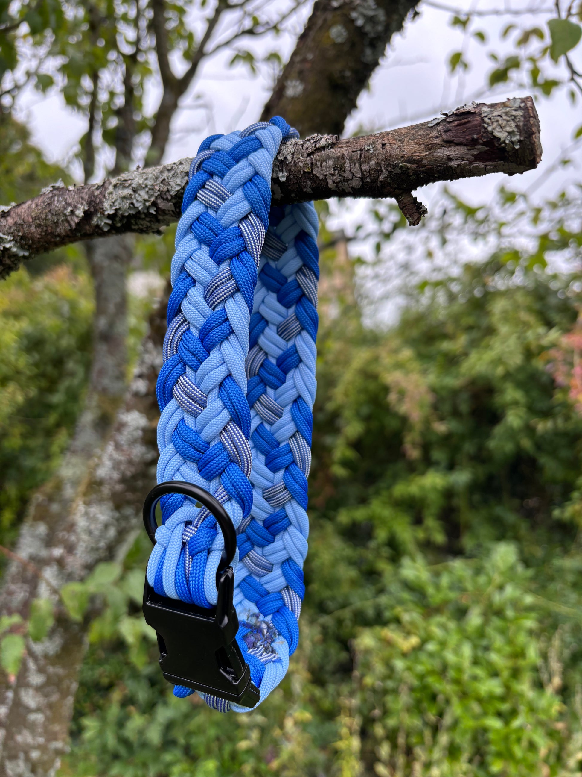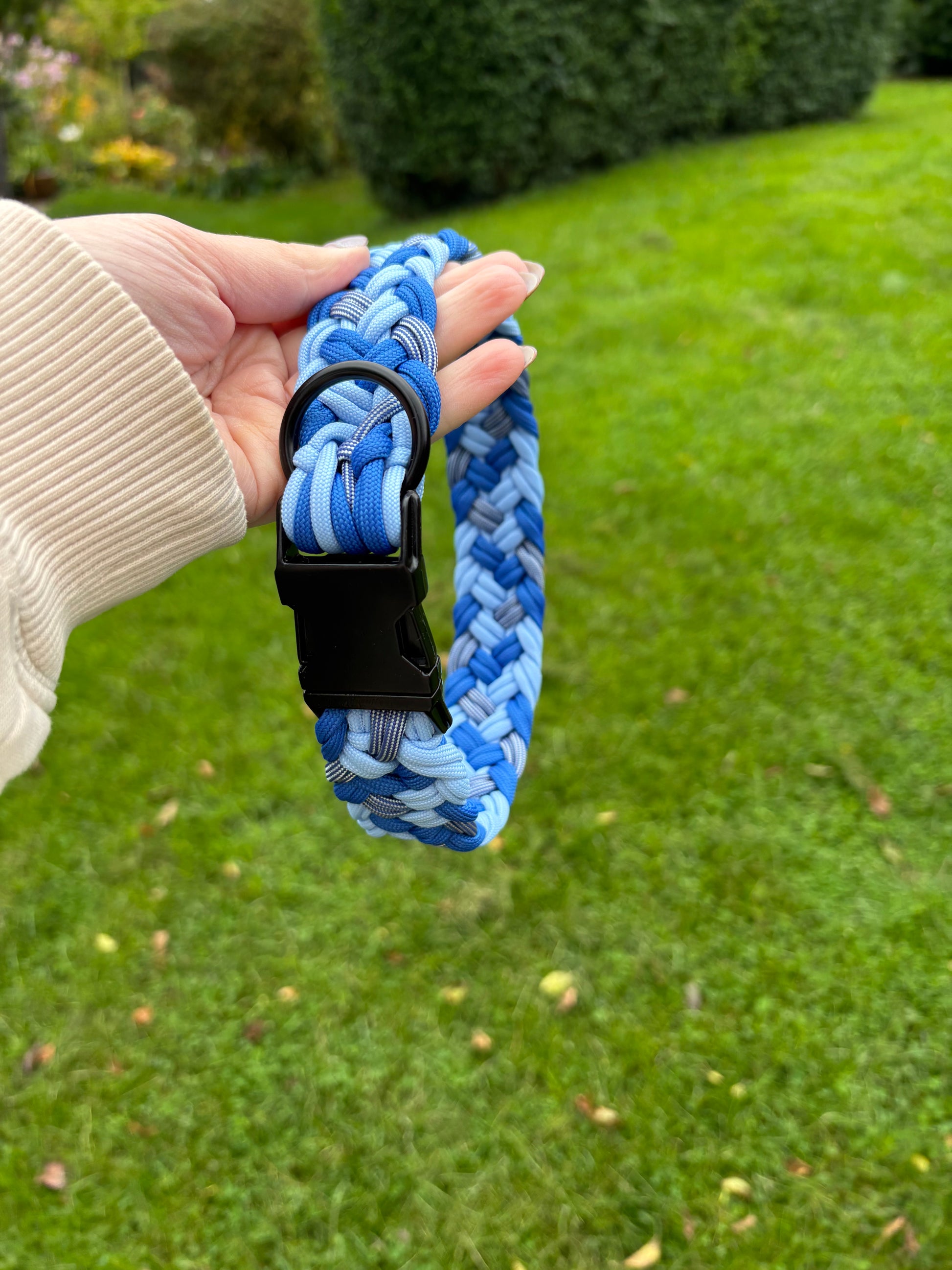 Gefertigt aus robustem Paracord ist das Halsband nicht nur langlebig, sondern schmiegt sich auch angenehm an den Hals deines Vierbeiners. Damit es perfekt sitzt, bieten wir dir zwei Varianten an: