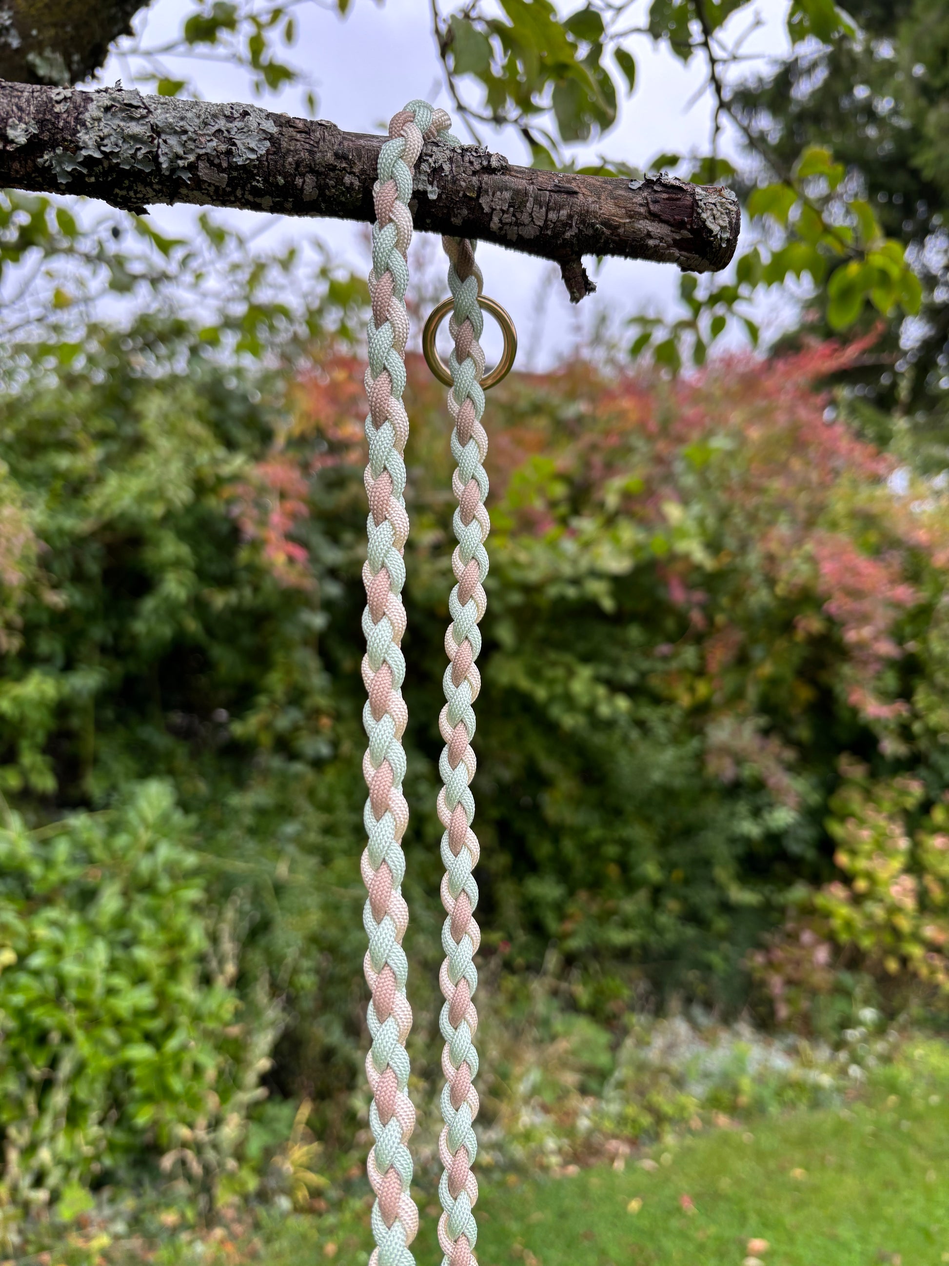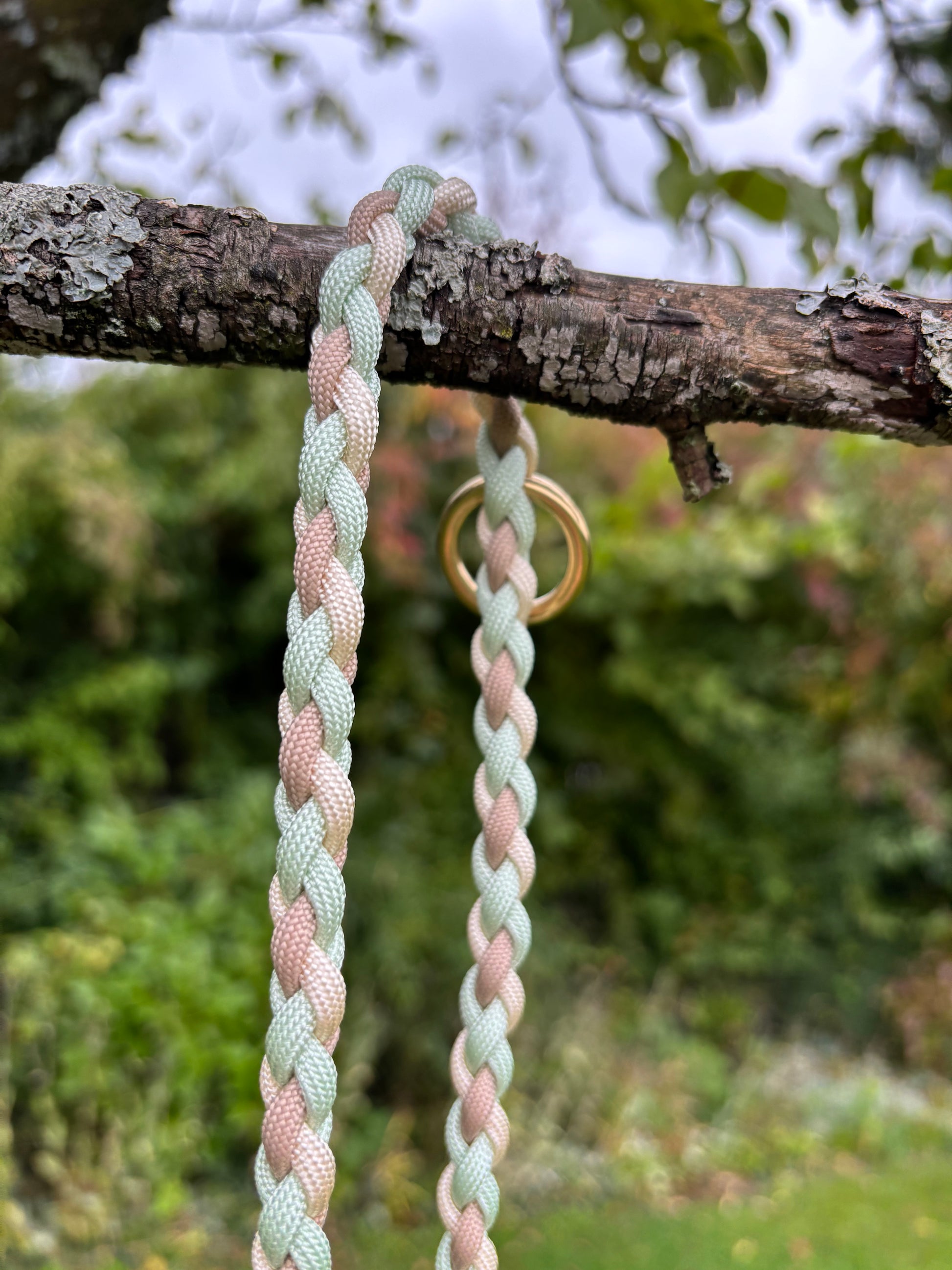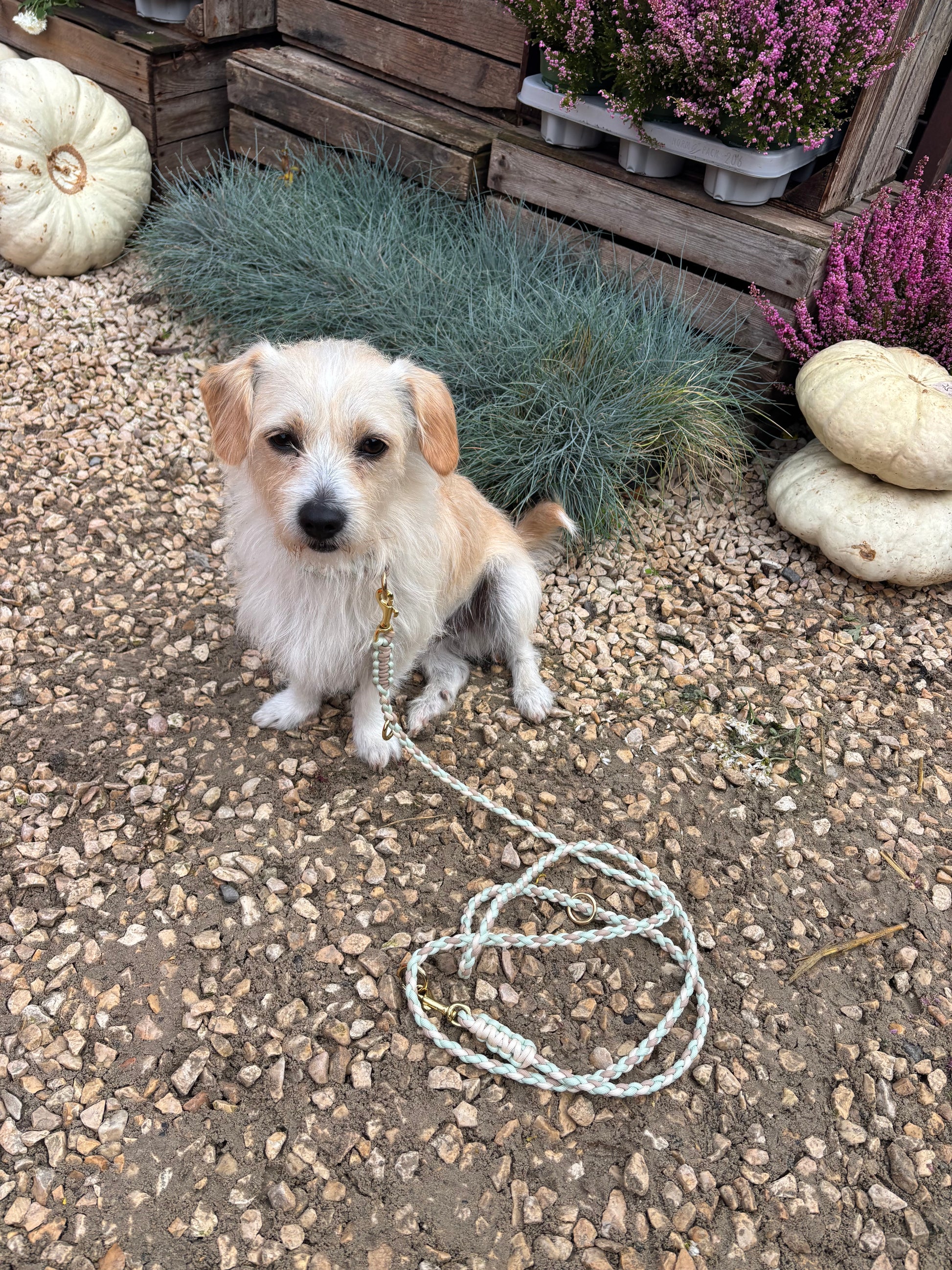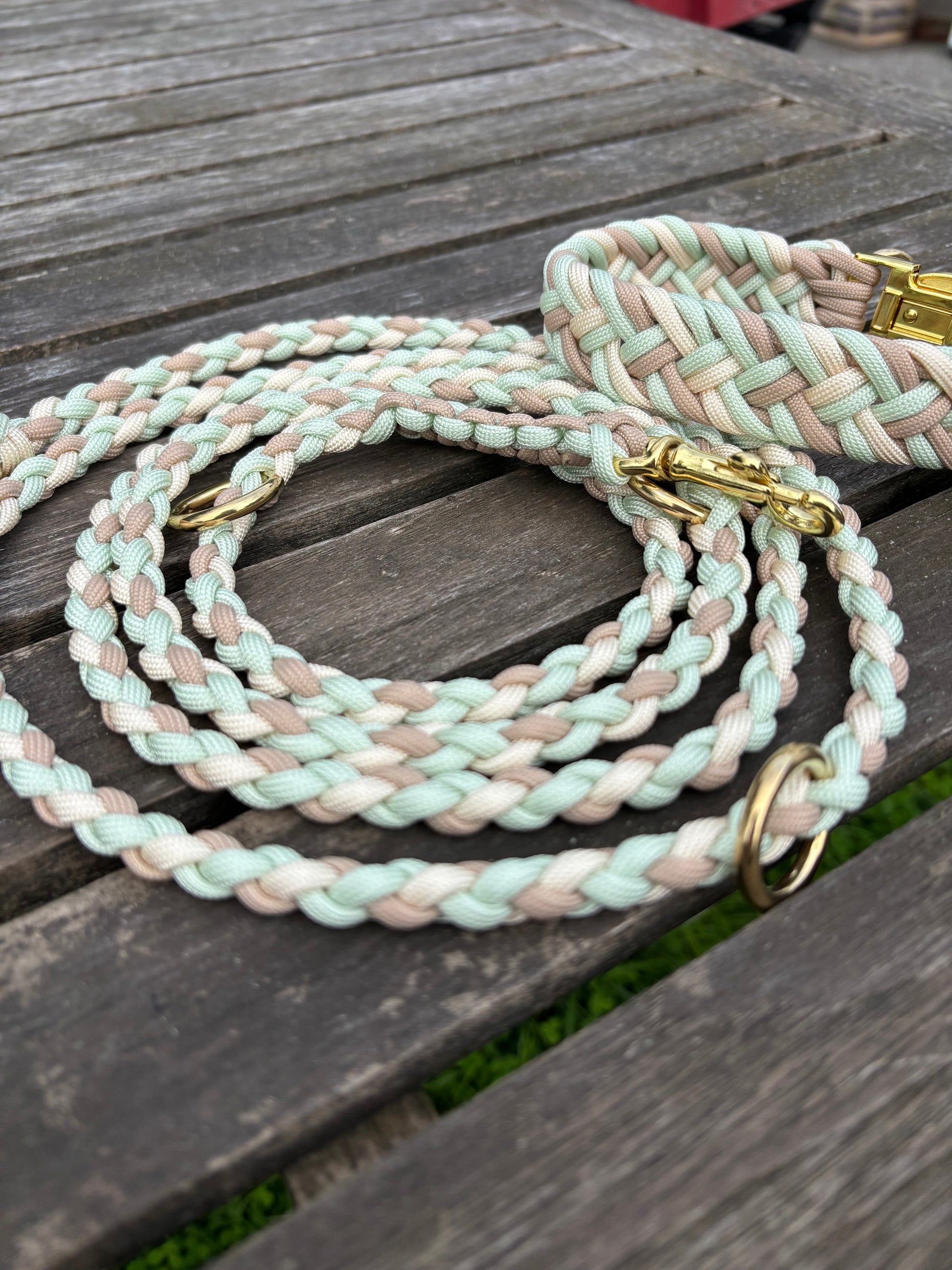 Hundeleine „Momo“ – Paracord in Creme, Hellbraun & Türkis